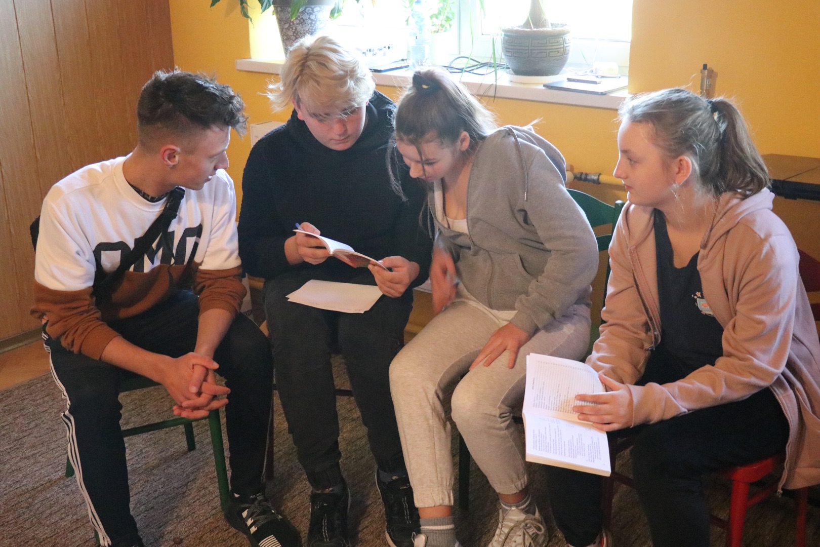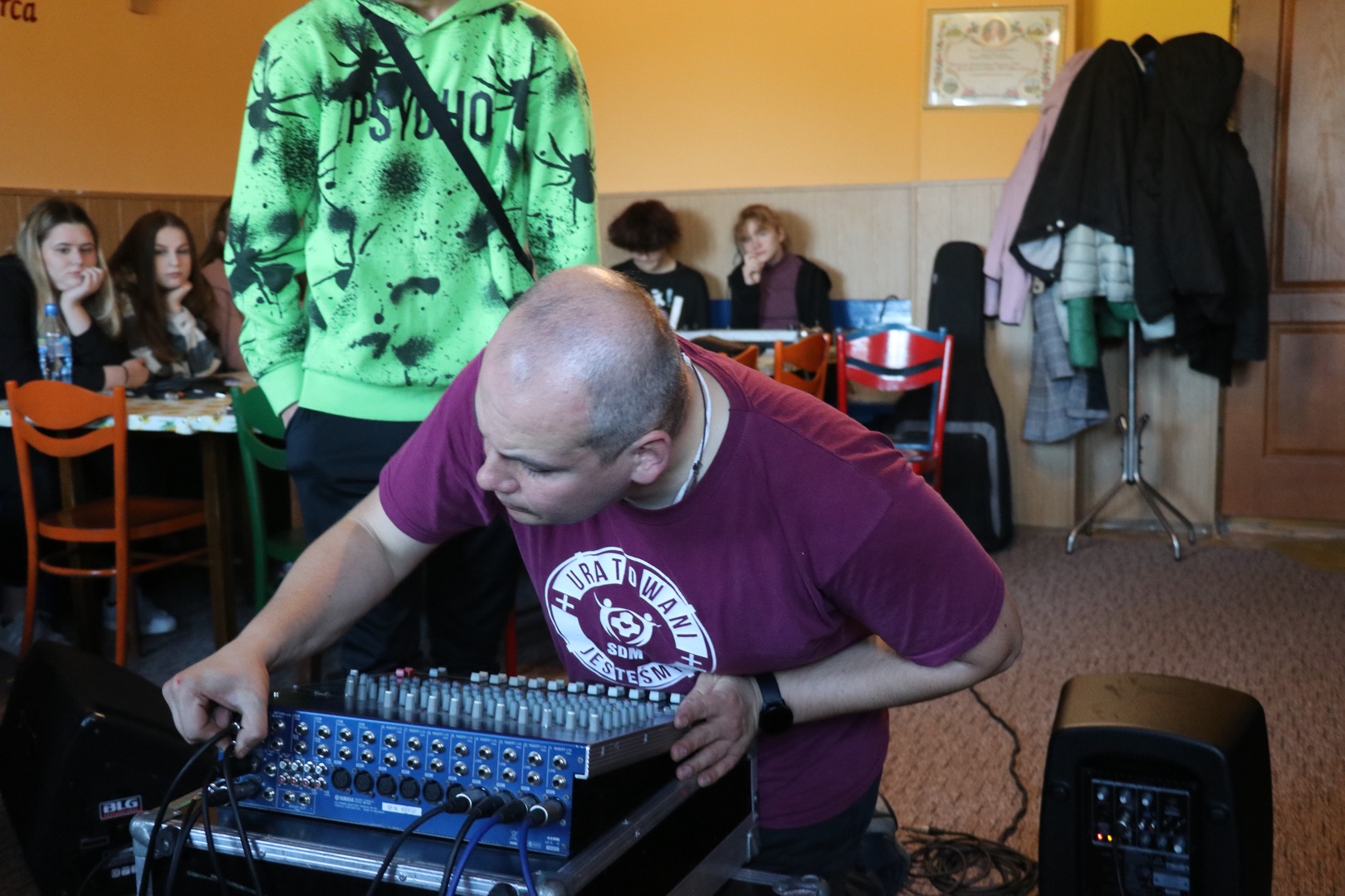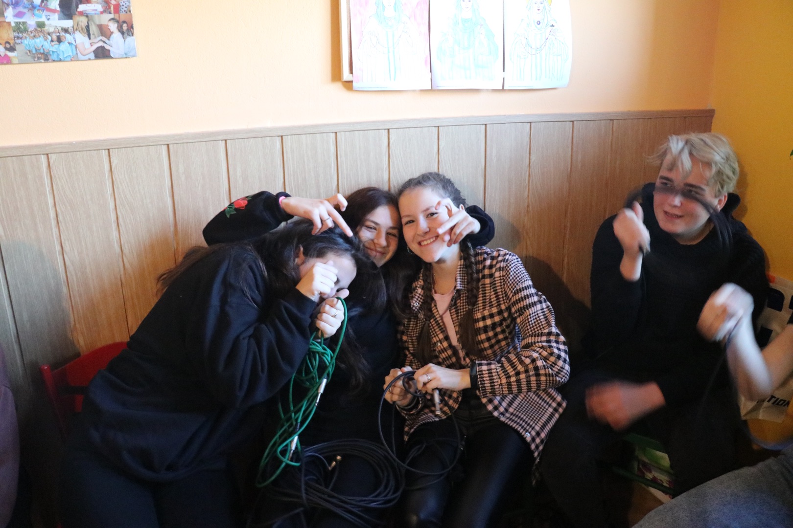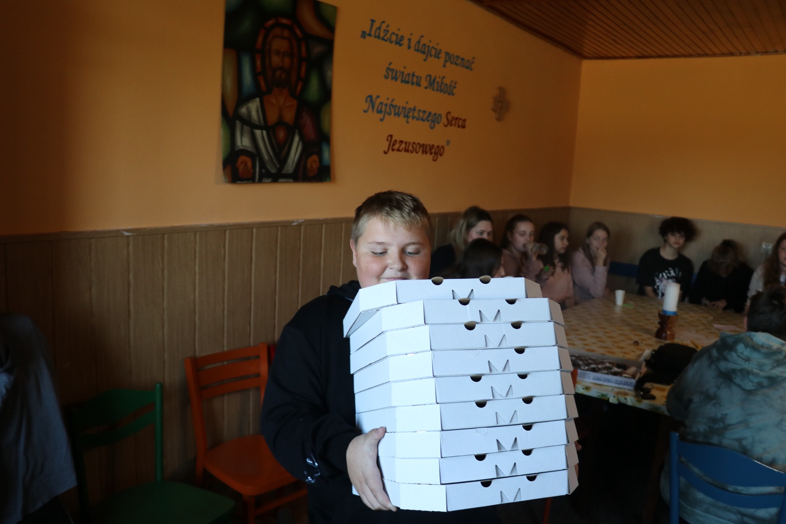Rozpoczęło się niewinnie - jutrznią, następnie omówieniem budowy i specyfiki psalmów. Z teorii młodzież przeszła do praktyki i dzielnie stawiła czoła każdego rodzaju kablom, poznała ich budowę i metody zwijania w taki sposób, by nie naderwać delikatnych włókien znajdujących się w środku. Z pozoru prosta czynność okazała się nie małym wyzwaniem. W następnej kolejności wraz z Księdzem prowadzącym rozpracowywali mikser muzyczny. Czerpali z tego wiele radości, ponieważ do akcji wkroczyły mikrofony i oczywiście nieszczęsne kabelki. Podczas zabawy z mikserem poznali funkcje i zastosowania poszczególnych suwaków, przycisków oraz wejść. Kolejną rzeczą z jaką się zapoznali były informacje dotyczące prowadzenia scholi. Po krótkiej prezentacji młodzież zaczęła pracę w grupach, nad wcześniej uzyskanymi wiadomościami na, których podstawie musieli dobrać zestaw pieśni na przykładową Mszę Niedzielną. Po tych czynnościach zabrali się za układ oddechowy i aparat mowy. Dowiedzieli się co nieco o związku tych układów ze śpiewaniem, o trzech rejestrach i technikach śpiewania. Następnie po raz kolejny próbowali sprawdzić się w praktyce. Zaczęła się walka z samym sobą, oddychaniem i przeróżnymi ćwiczeniami na rozśpiewkę itp...