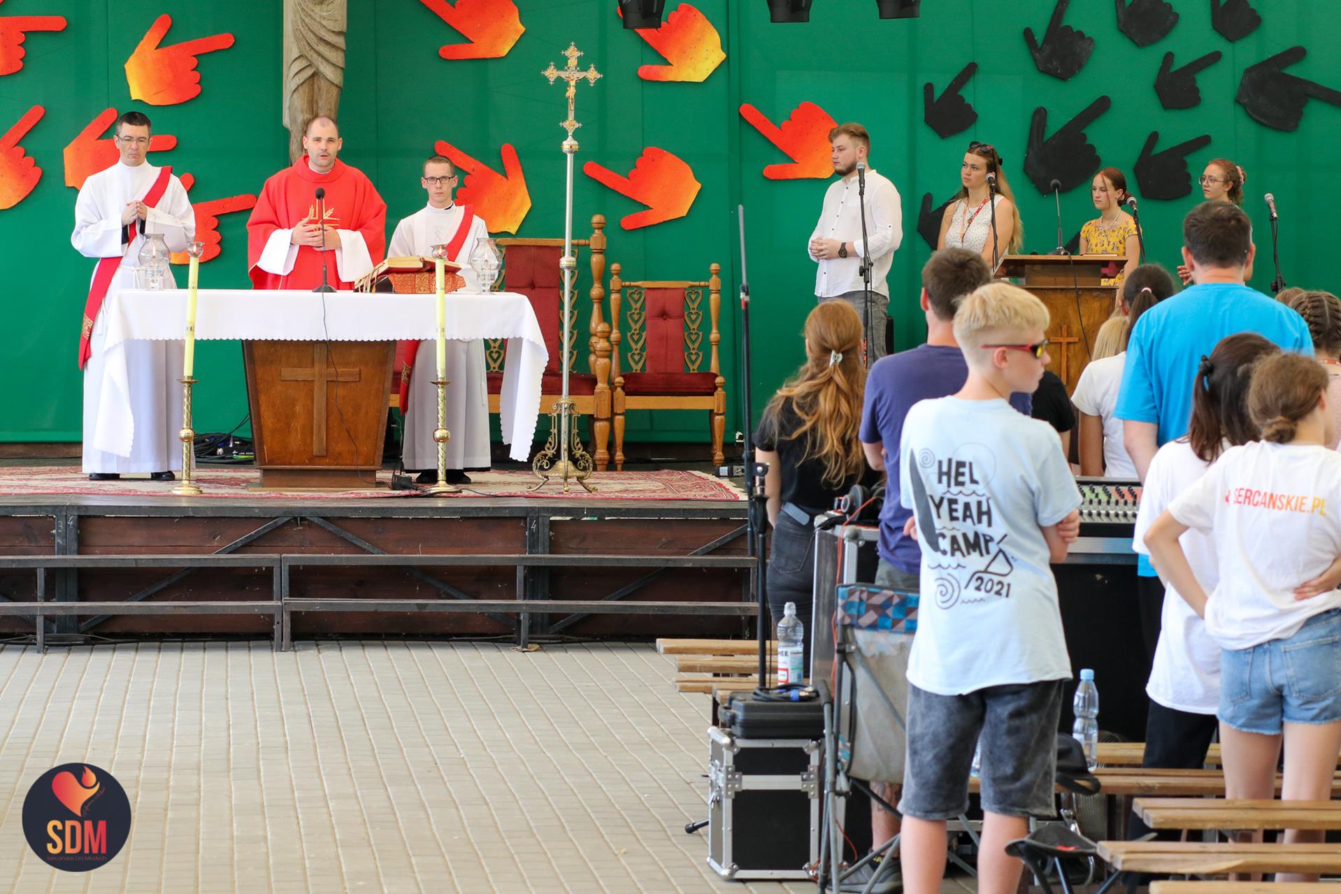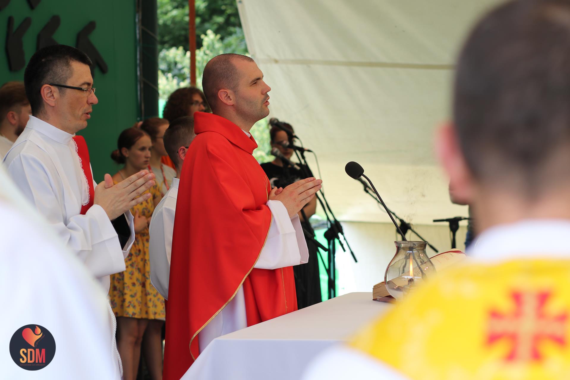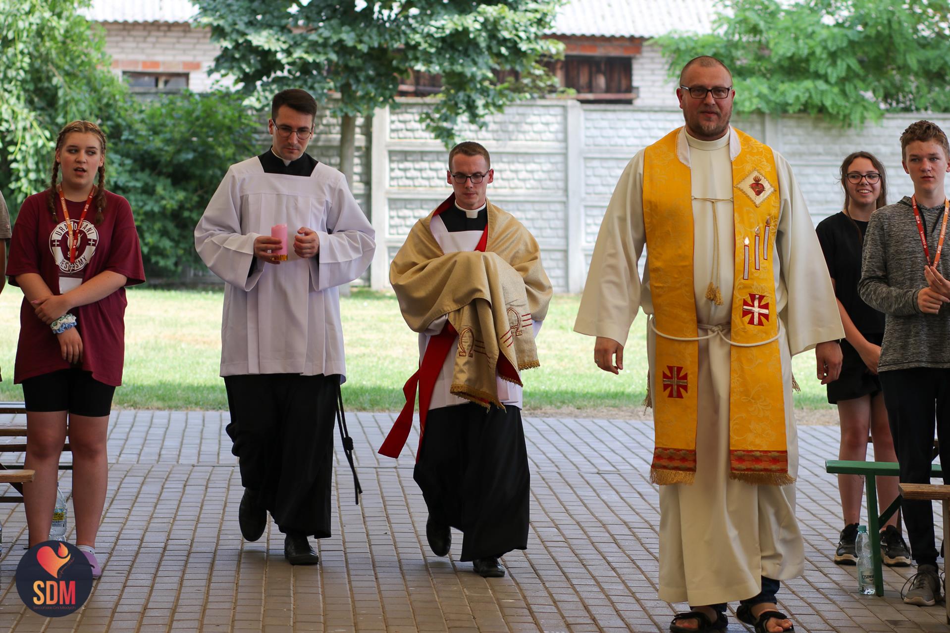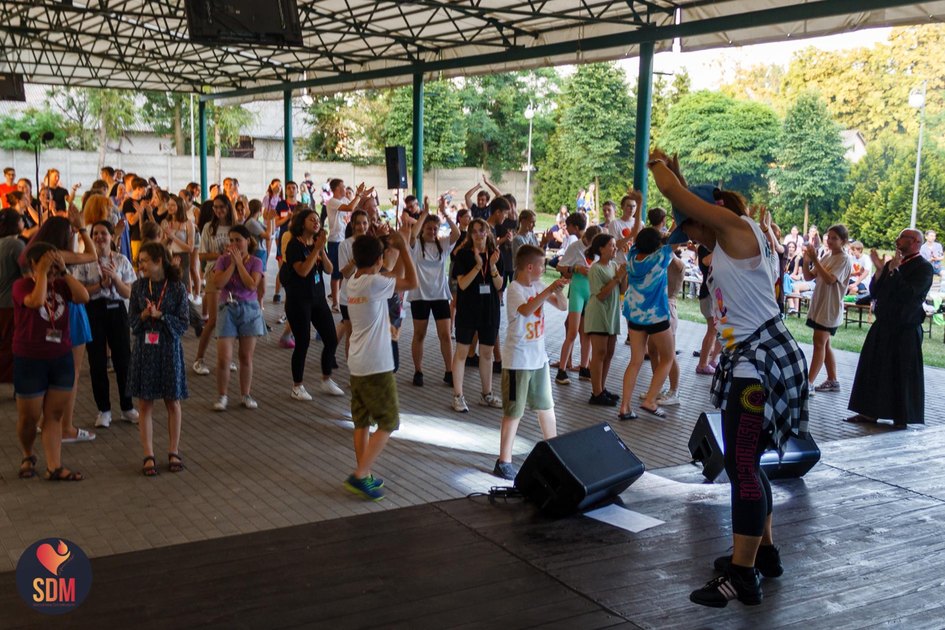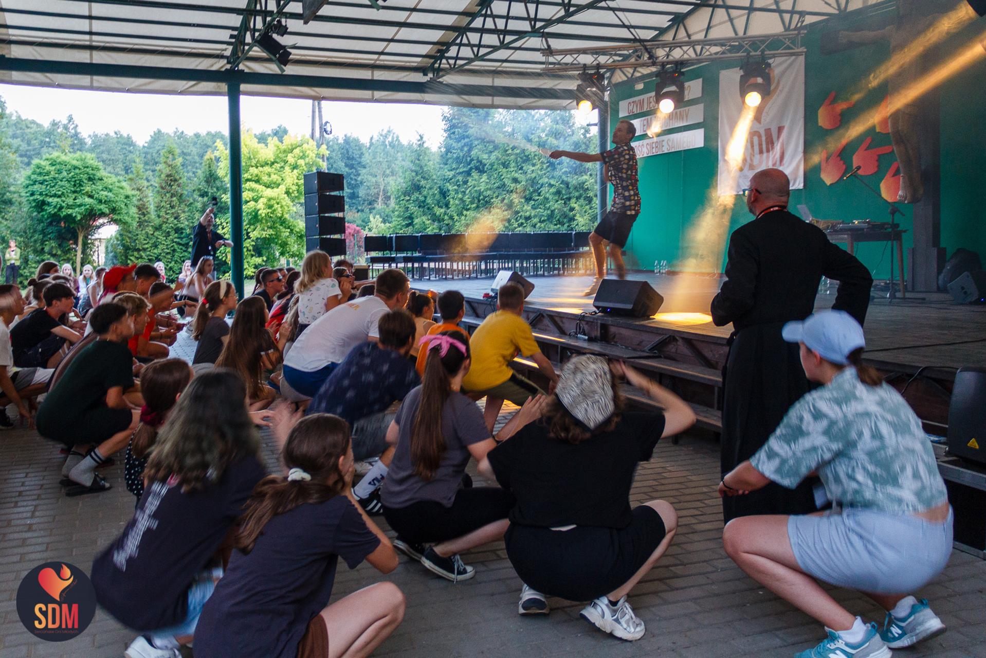 Następnie wzięliśmy udział w prymicyjnej Eucharystii ks. Wojtka Olszewskiego SCJ, podczas której ks. Darek Lewczak SCJ wygłosił bardzo osobistą homilię do naszego neoprezbitera. Mszę Świętą zakończyło błogosławieństwo z nałożeniem dłoni, którego owocem było uzyskanie odpustu zupełnego. Kolejnym punktem programu były zupki do wyboru, warsztaty lub czas wolny, a po odpoczynku intensywna praca w grupach. Potem znowu jedzonko i rozgrzewka w formie zumby z Wodzirejami z Krakowa.