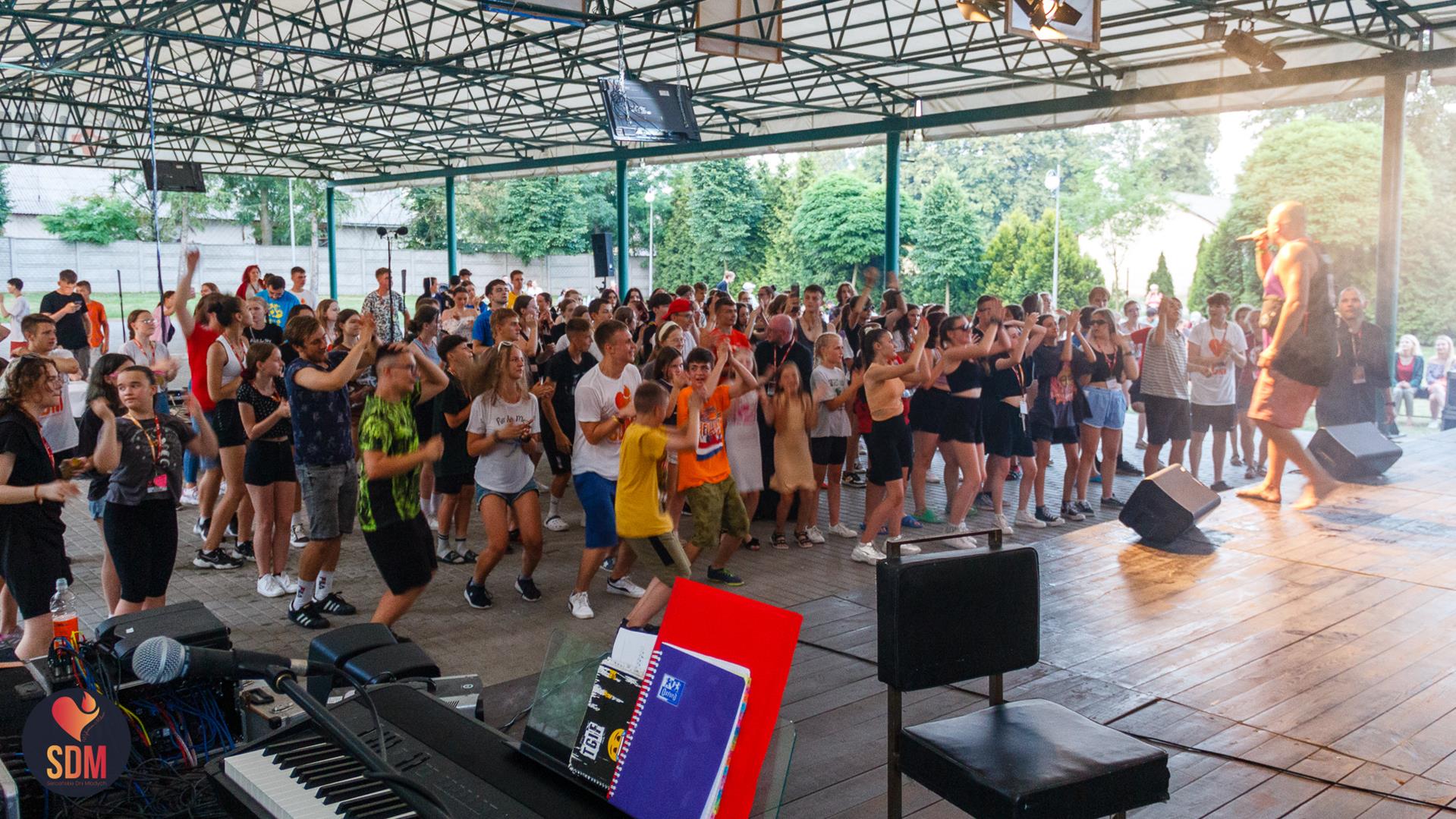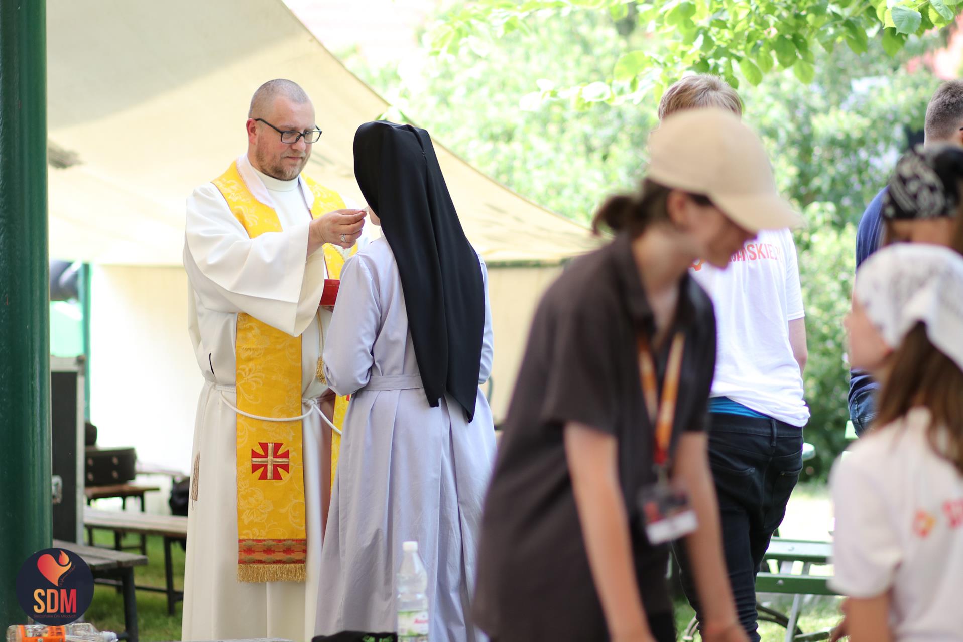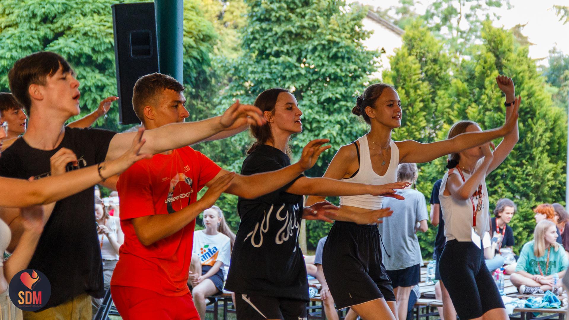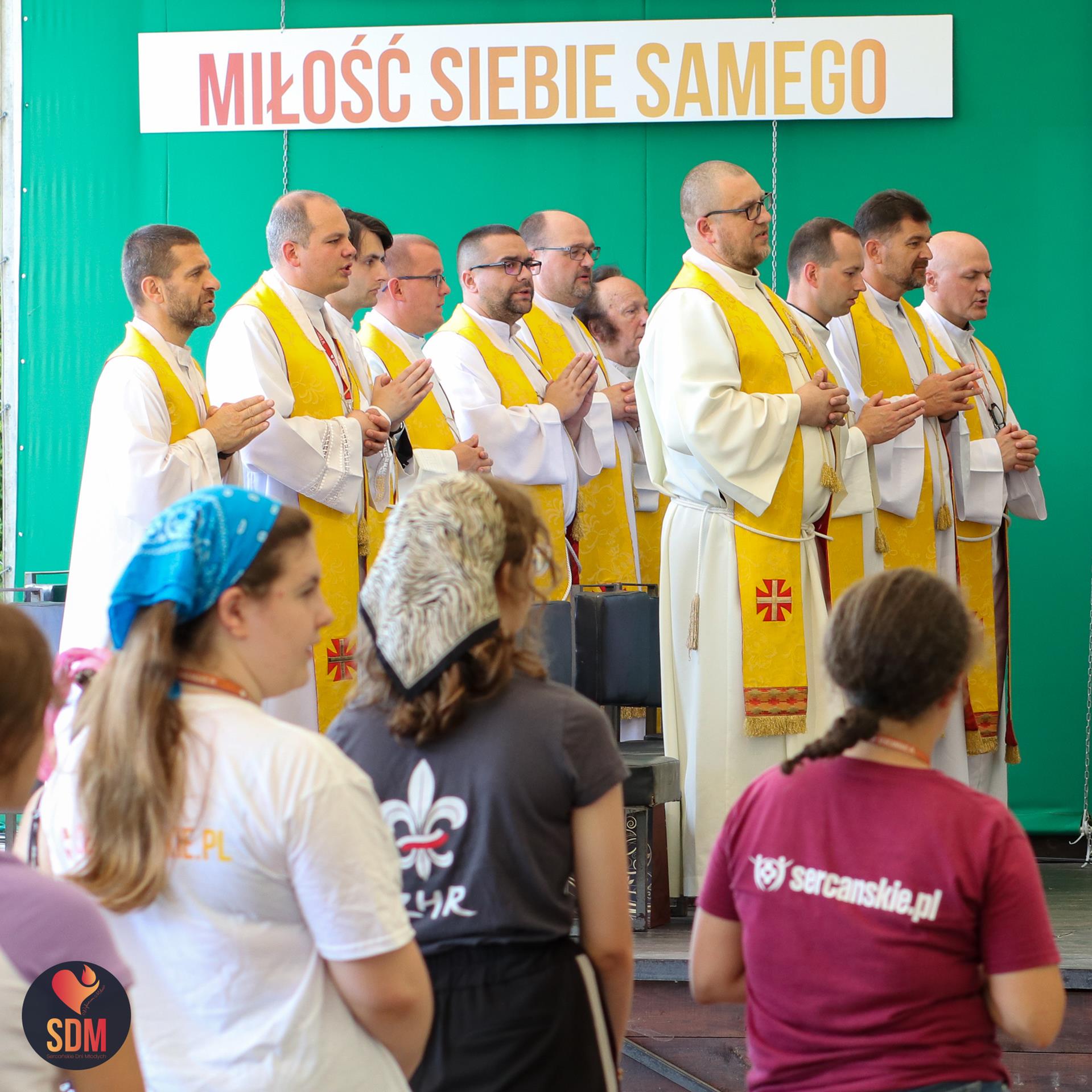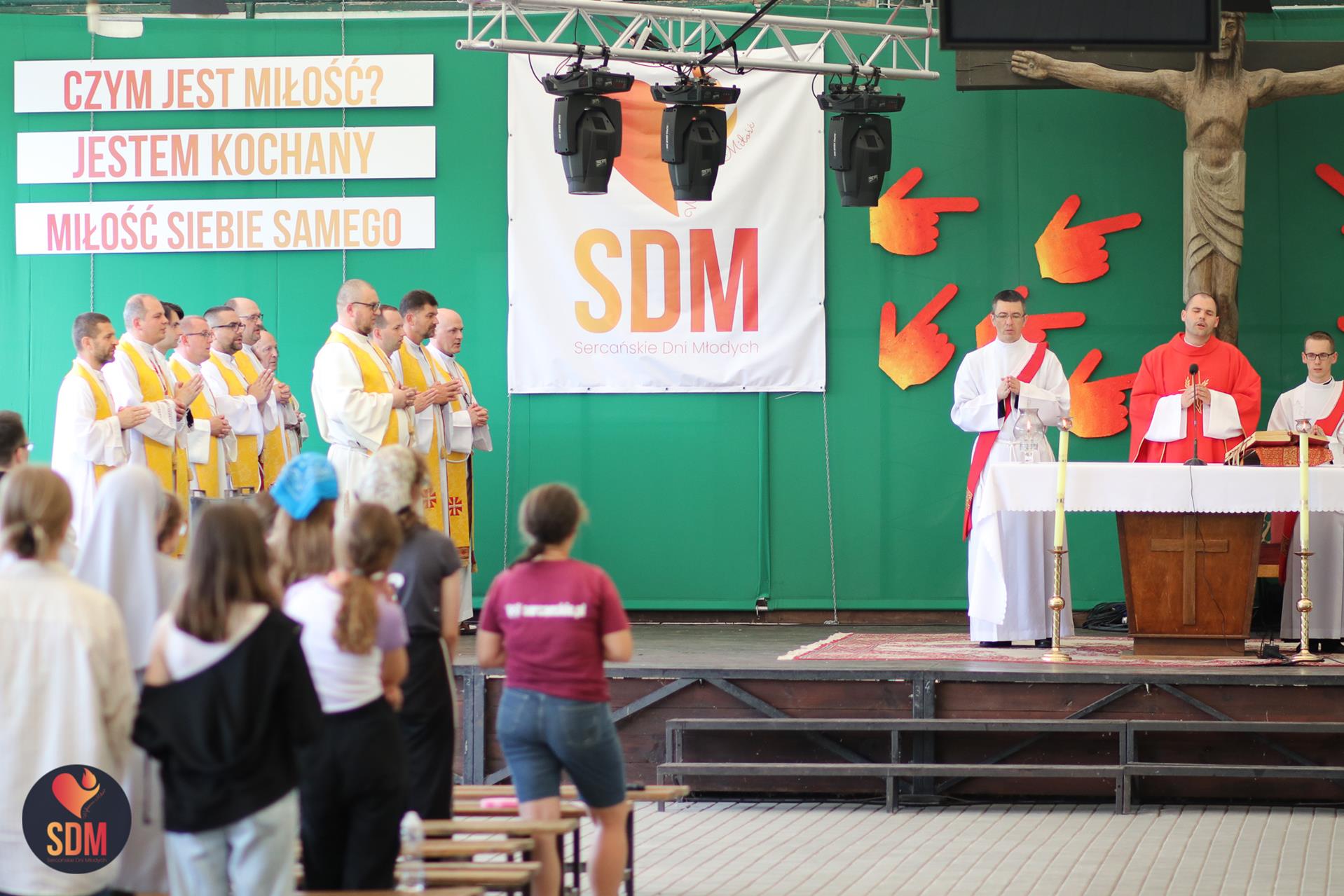 Następnie wzięliśmy udział w prymicyjnej Eucharystii ks. Wojtka Olszewskiego SCJ, podczas której ks. Darek Lewczak SCJ wygłosił bardzo osobistą homilię do naszego neoprezbitera. Mszę Świętą zakończyło błogosławieństwo z nałożeniem dłoni, którego owocem było uzyskanie odpustu zupełnego. Kolejnym punktem programu były zupki do wyboru, warsztaty lub czas wolny, a po odpoczynku intensywna praca w grupach. Potem znowu jedzonko i rozgrzewka w formie zumby z Wodzirejami z Krakowa.