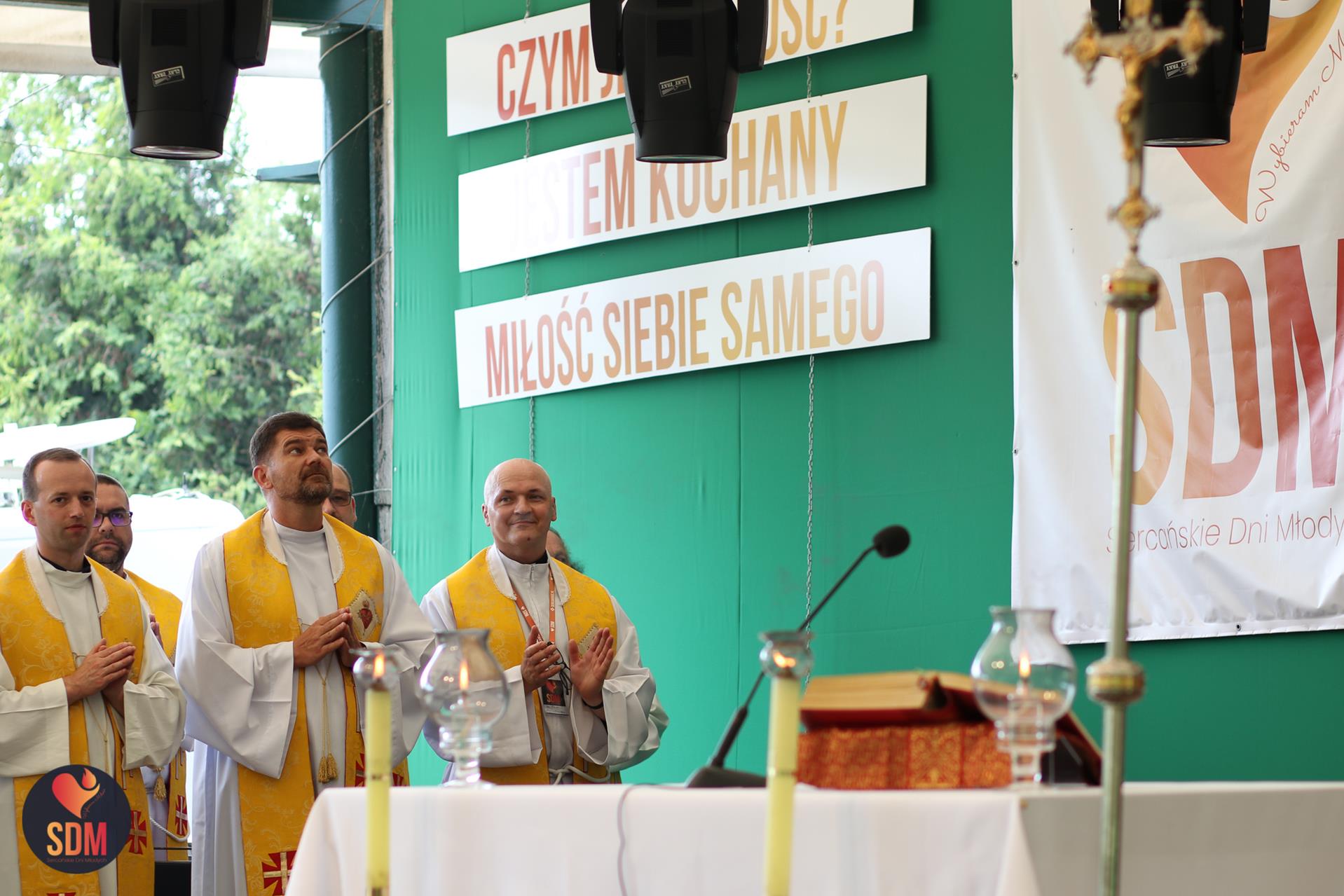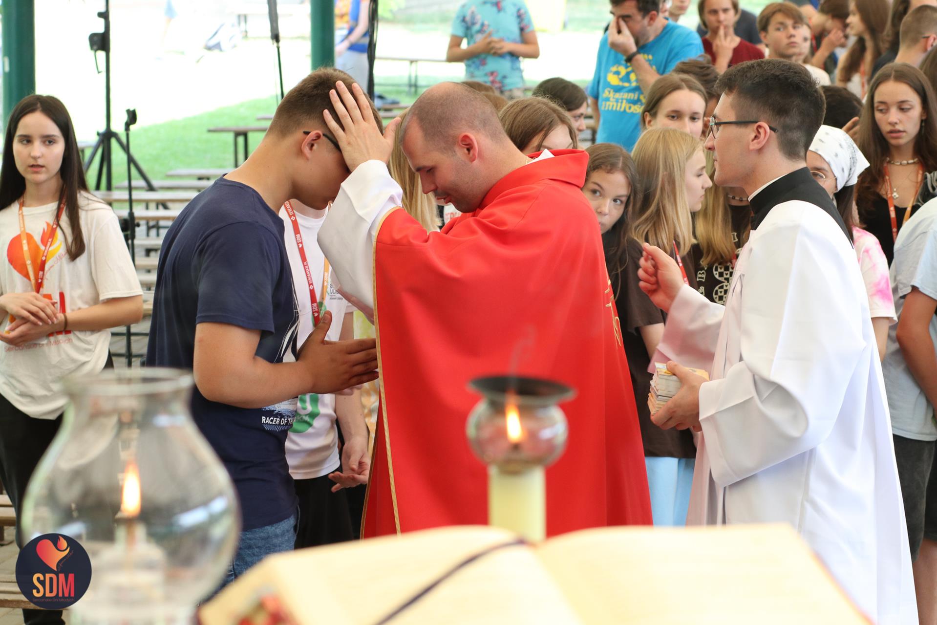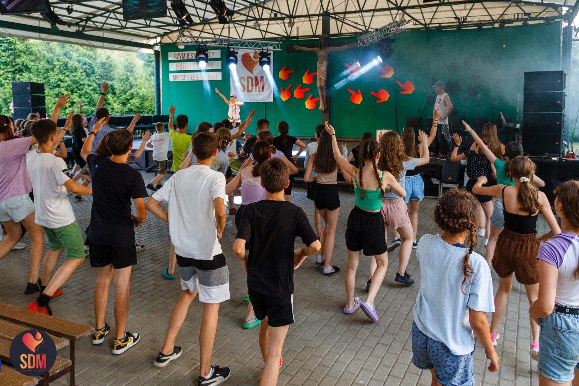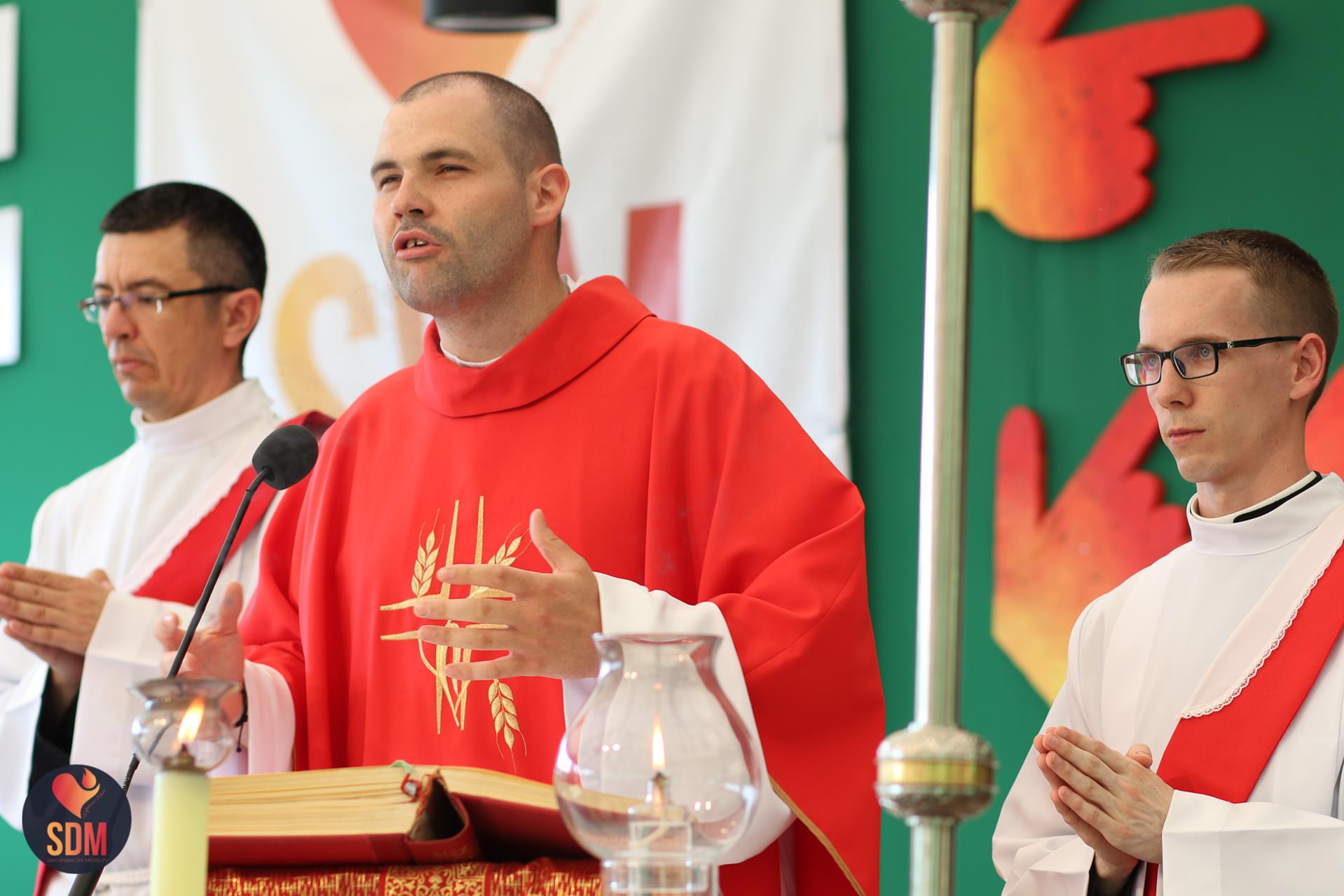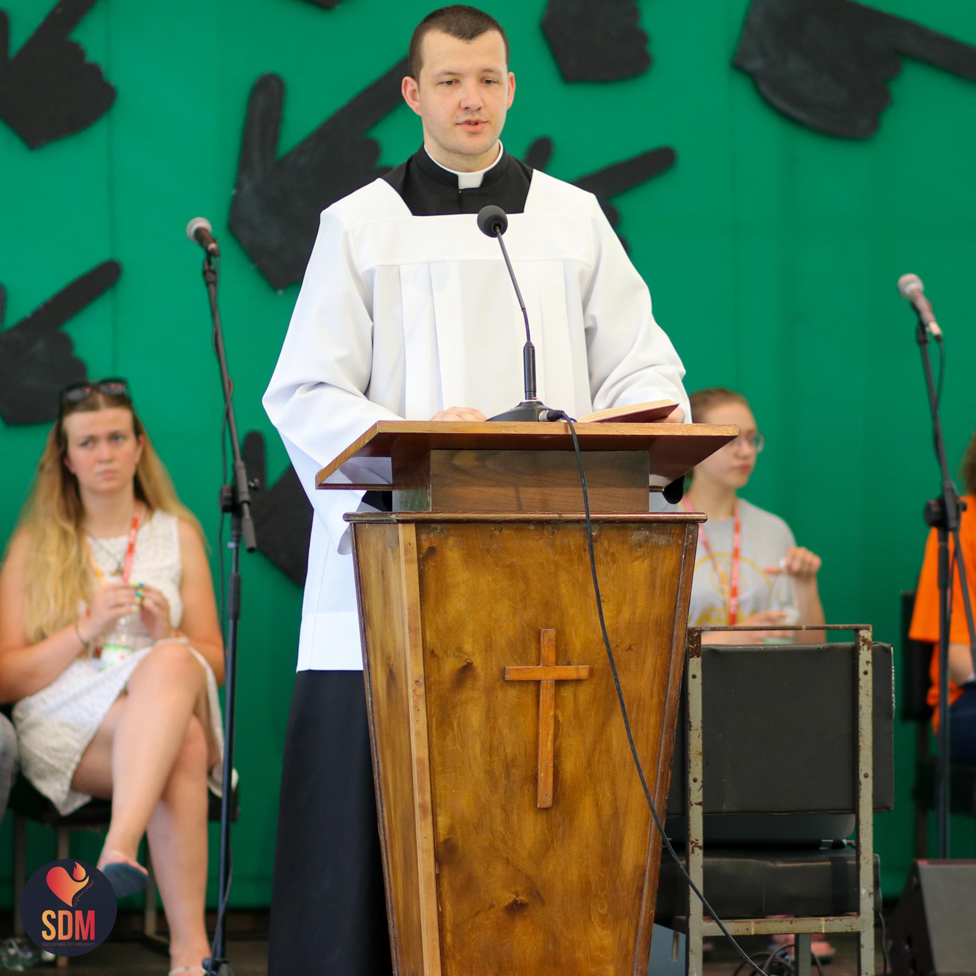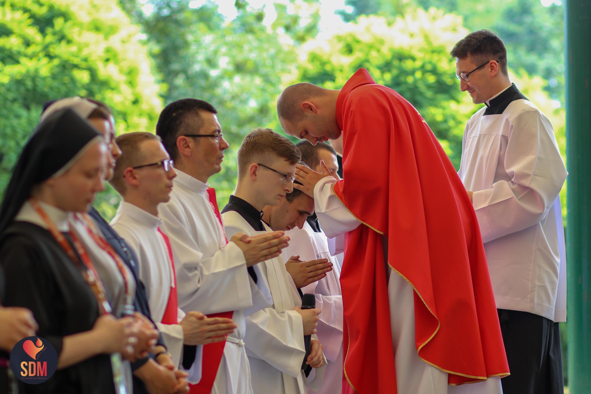Następnie wzięliśmy udział w prymicyjnej Eucharystii ks. Wojtka Olszewskiego SCJ, podczas której ks. Darek Lewczak SCJ wygłosił bardzo osobistą homilię do naszego neoprezbitera. Mszę Świętą zakończyło błogosławieństwo z nałożeniem dłoni, którego owocem było uzyskanie odpustu zupełnego. Kolejnym punktem programu były zupki do wyboru, warsztaty lub czas wolny, a po odpoczynku intensywna praca w grupach. Potem znowu jedzonko i rozgrzewka w formie zumby z Wodzirejami z Krakowa.