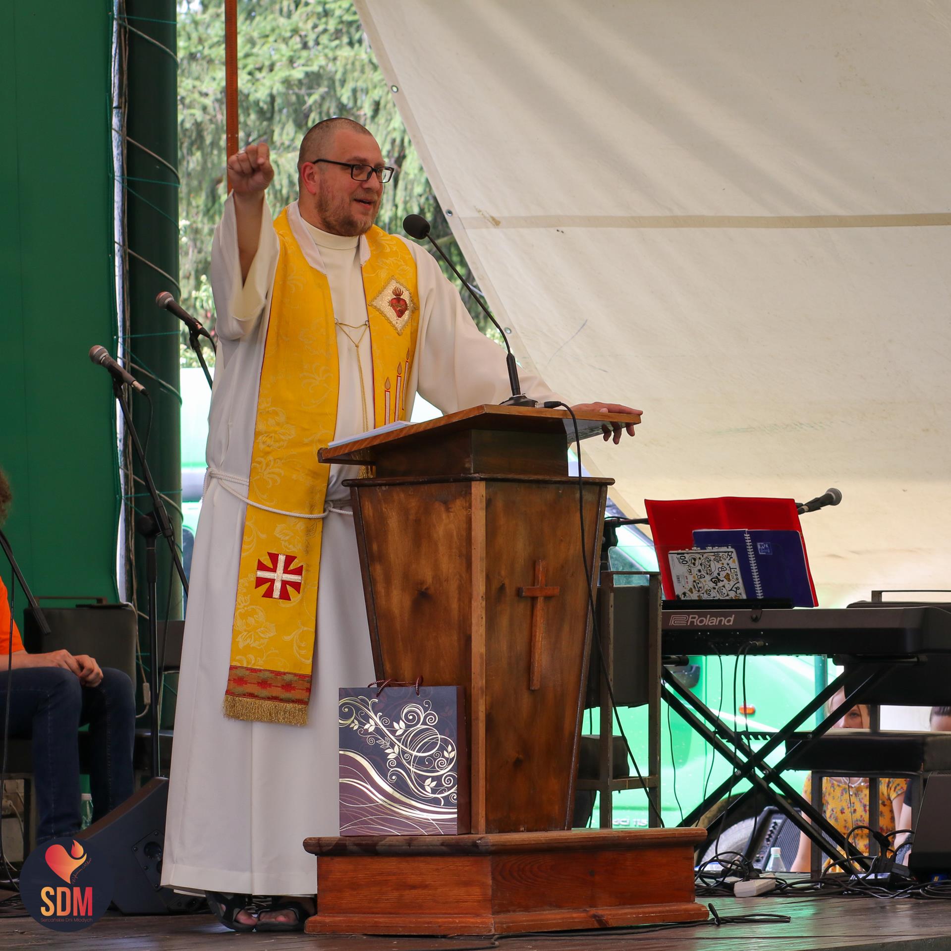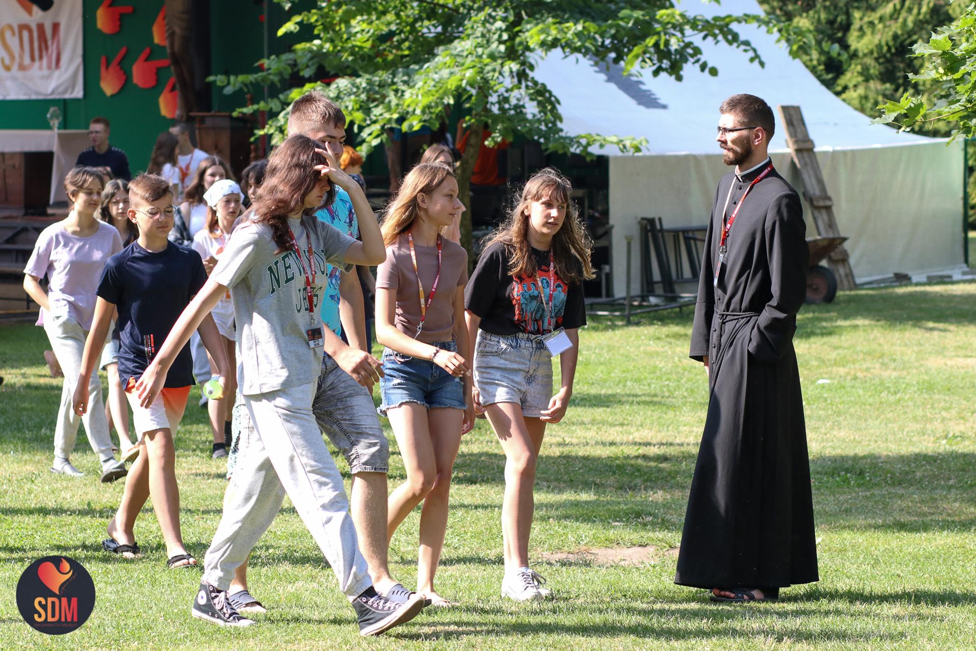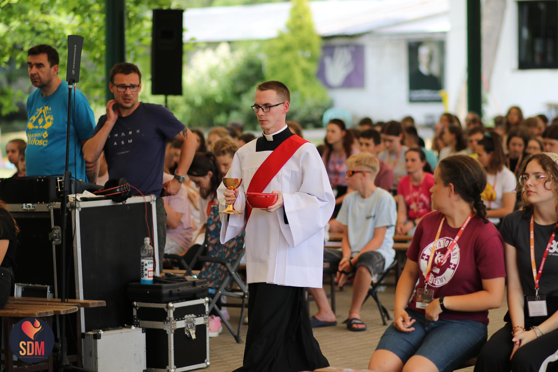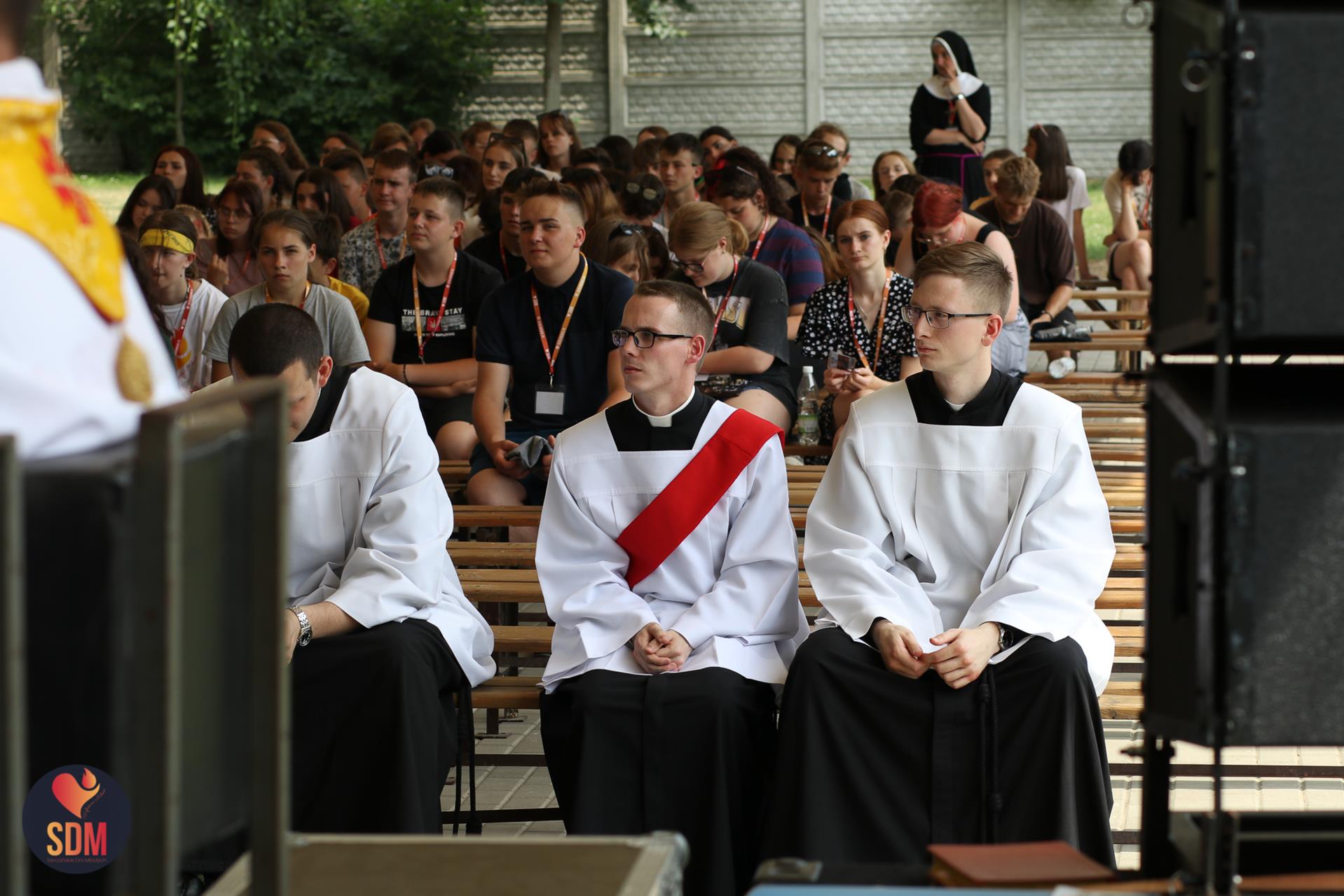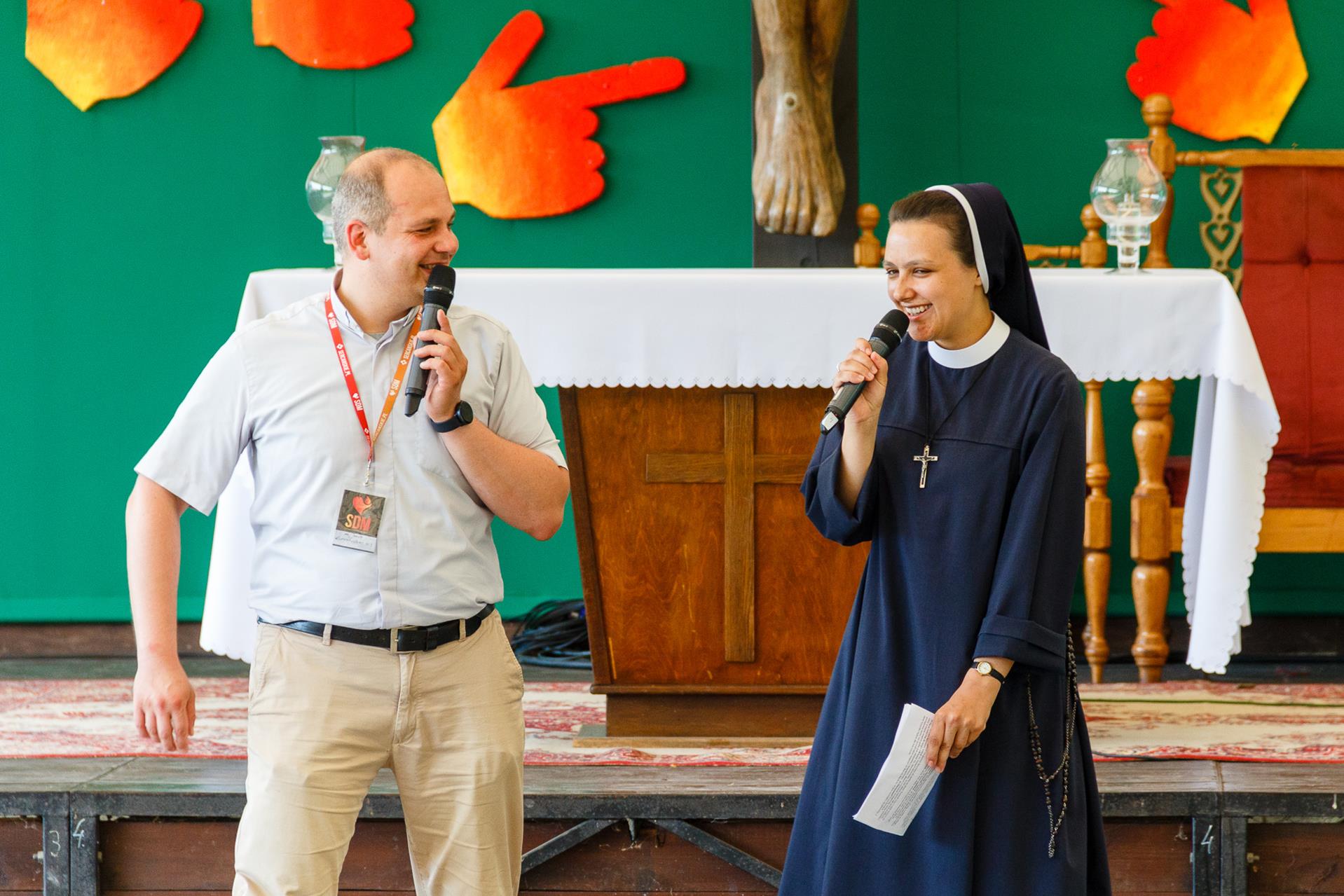 Następnie wzięliśmy udział w prymicyjnej Eucharystii ks. Wojtka Olszewskiego SCJ, podczas której ks. Darek Lewczak SCJ wygłosił bardzo osobistą homilię do naszego neoprezbitera. Mszę Świętą zakończyło błogosławieństwo z nałożeniem dłoni, którego owocem było uzyskanie odpustu zupełnego. Kolejnym punktem programu były zupki do wyboru, warsztaty lub czas wolny, a po odpoczynku intensywna praca w grupach. Potem znowu jedzonko i rozgrzewka w formie zumby z Wodzirejami z Krakowa.