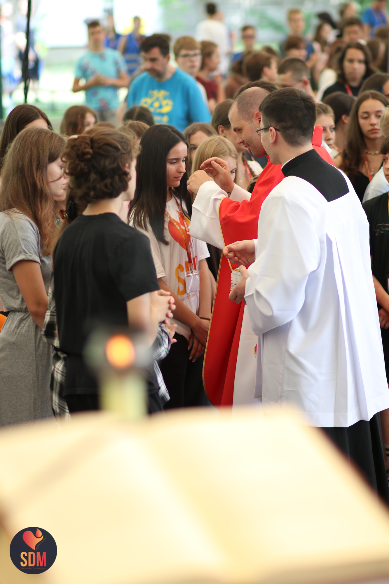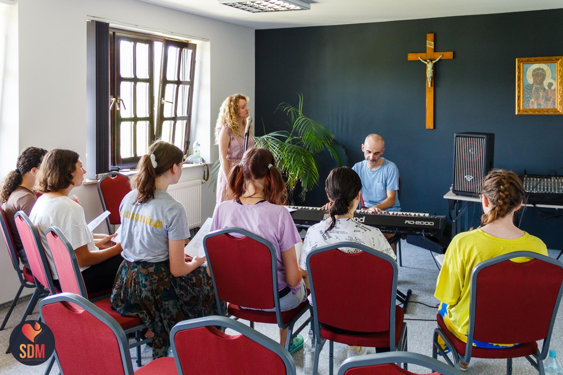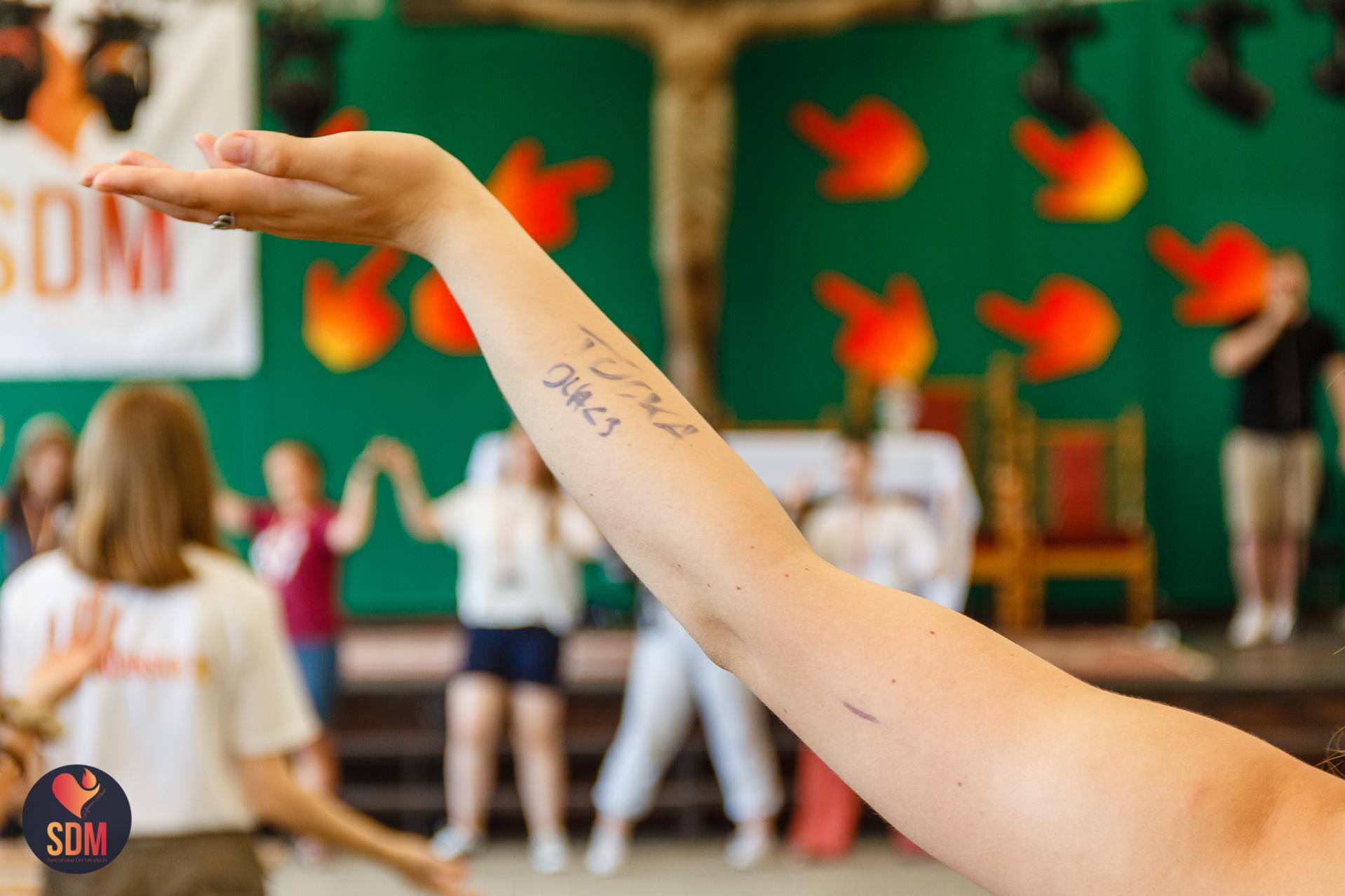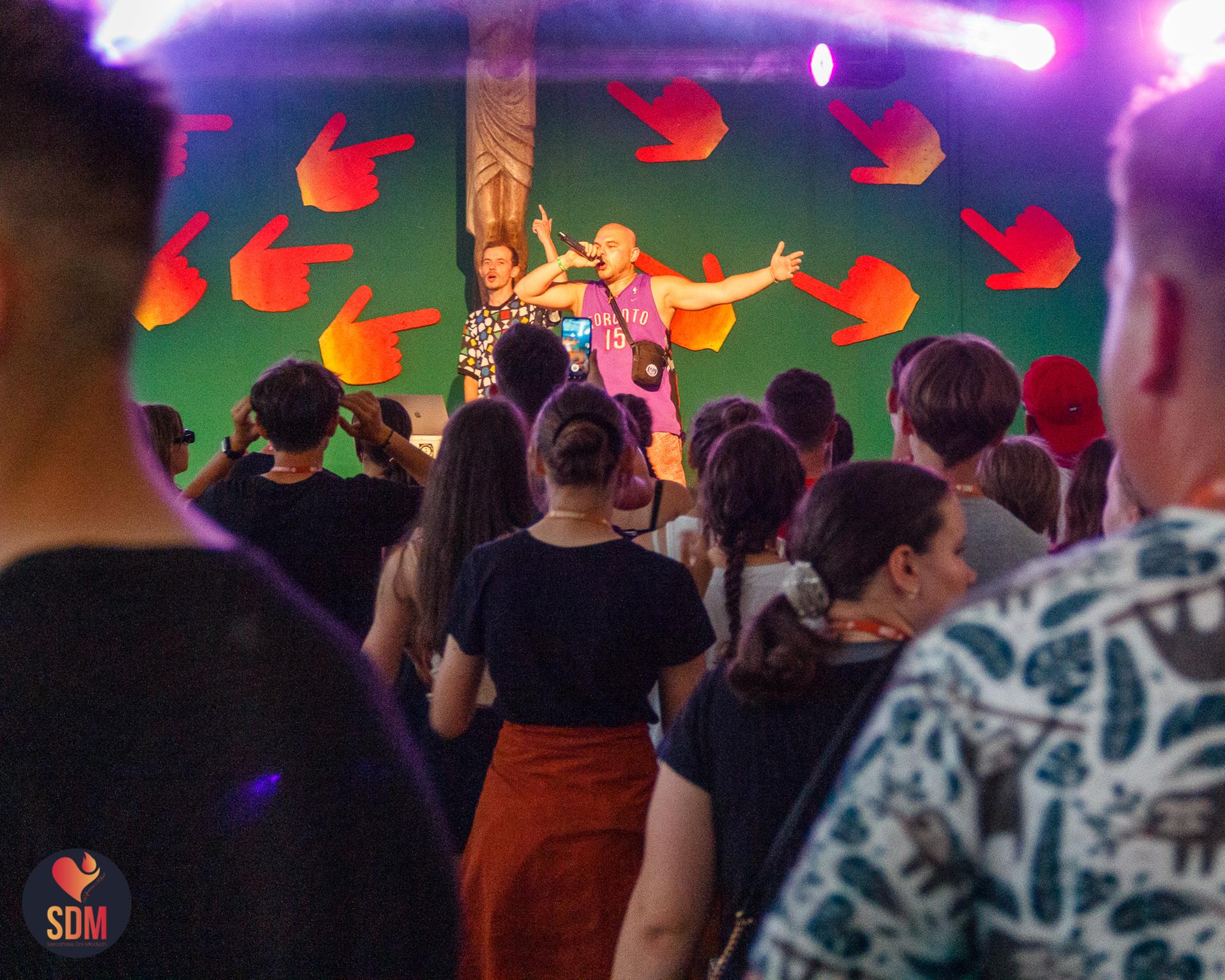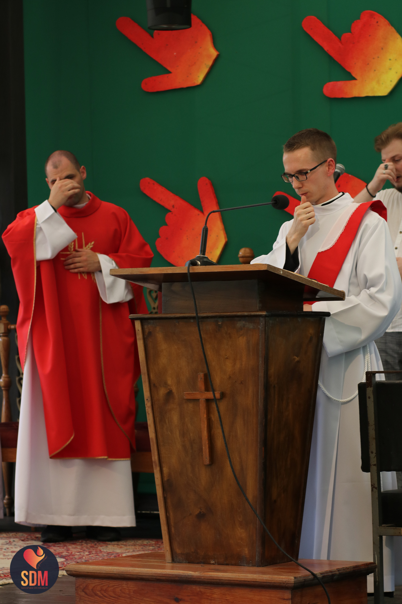 Następnie wzięliśmy udział w prymicyjnej Eucharystii ks. Wojtka Olszewskiego SCJ, podczas której ks. Darek Lewczak SCJ wygłosił bardzo osobistą homilię do naszego neoprezbitera. Mszę Świętą zakończyło błogosławieństwo z nałożeniem dłoni, którego owocem było uzyskanie odpustu zupełnego. Kolejnym punktem programu były zupki do wyboru, warsztaty lub czas wolny, a po odpoczynku intensywna praca w grupach. Potem znowu jedzonko i rozgrzewka w formie zumby z Wodzirejami z Krakowa.