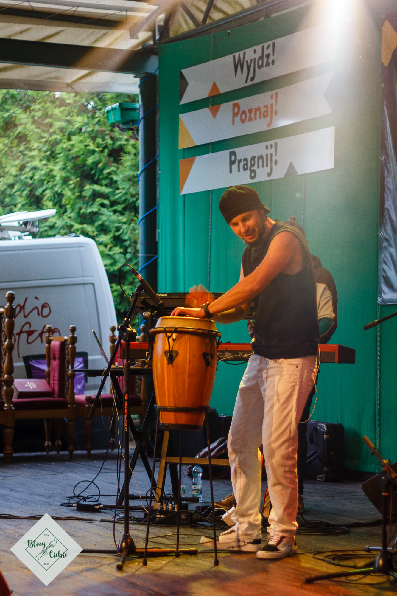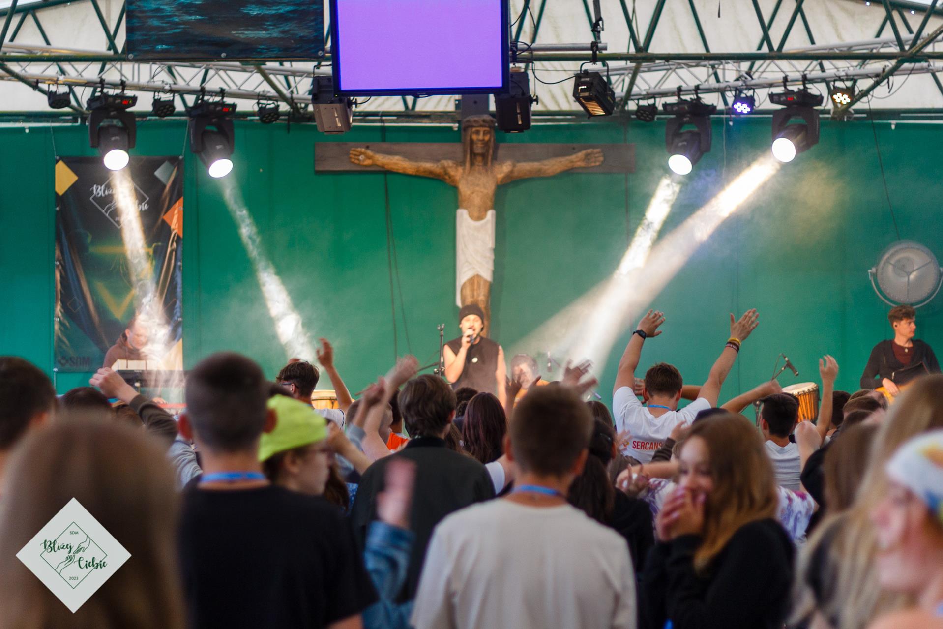 Zjedliśmy obiad i pełni energii ruszyliśmy na warsztaty i wspólnotę. Na koniec dnia w rytmie reggae bawiliśmy się na koncercie Damiana Syjonfama. Jak mówi jeden z uczestników: z roku na rok jest coraz lepiej, w tym roku to już w ogóle wspaniale. Świetnie się bawiłem i już nie mogę doczekać się jutrzejszej dyskoteki – dodaje jeden z uczestników spotkanych pod wiatą. Dzień zgodnie z SDMową tradycją zakończył Boski Mario i jego drużyna z filozoficzną opowiastką na dobranoc.