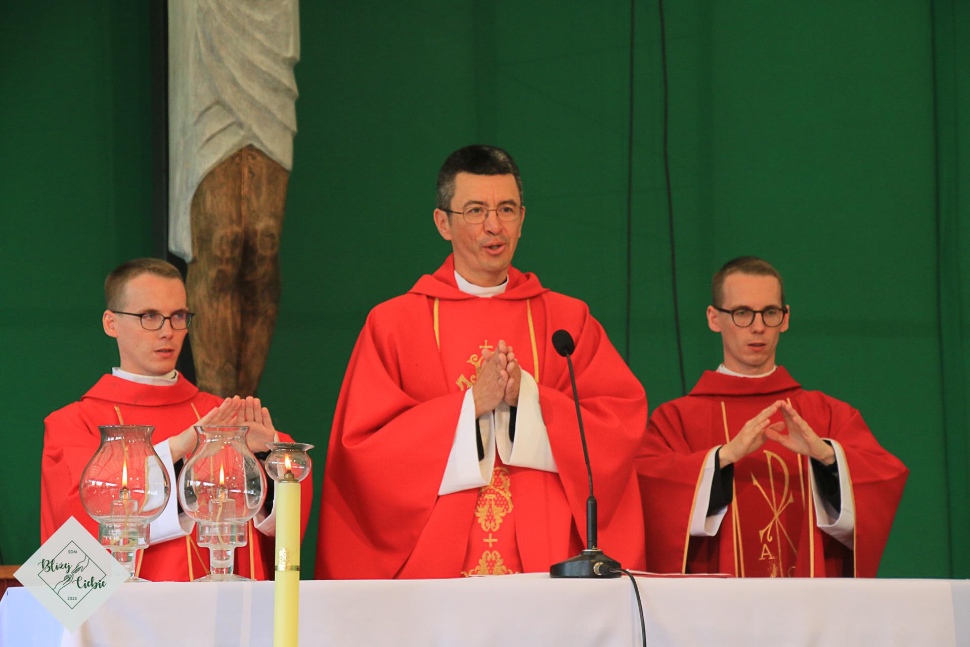 Po konferencji głośnym śpiewem Tak, Tak Panie przywitaliśmy księży prymicjantów, którzy celebrowali swoją pierwszą Eucharystię w Pliszczynie – miejscu, gdzie przed laty rozpoczęli okres postulatu. W homilii ks. Łukasz Grzejda SCJ zwrócił się do nich – odwołując się do swoich wspomnień, jako wychowawcy w seminarium - oraz do nas - że misją każdego z nas jest przynoszenie Bogu owoców typowych dla siebie. Na koniec otrzymaliśmy błogosławieństwo prymicyjne.