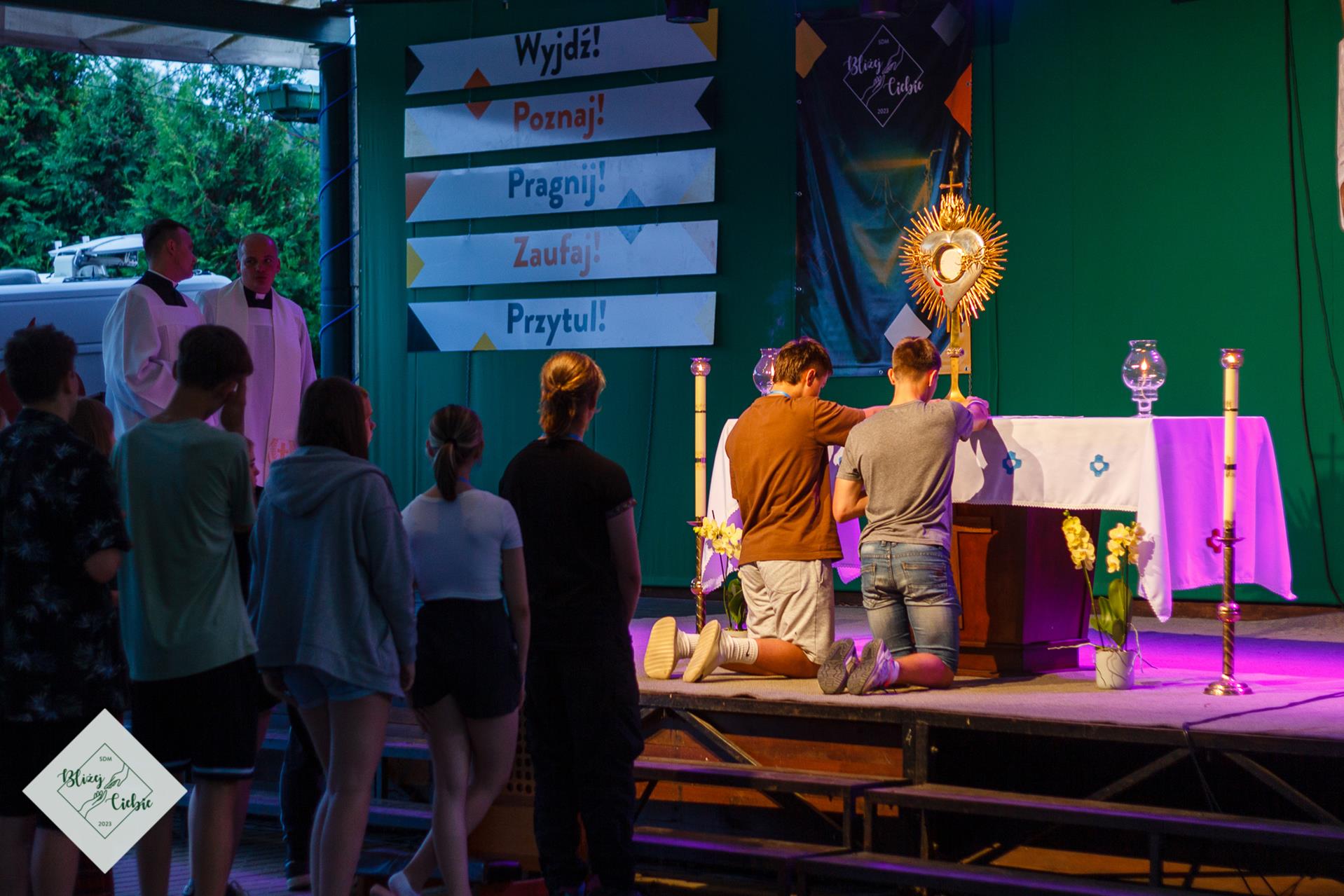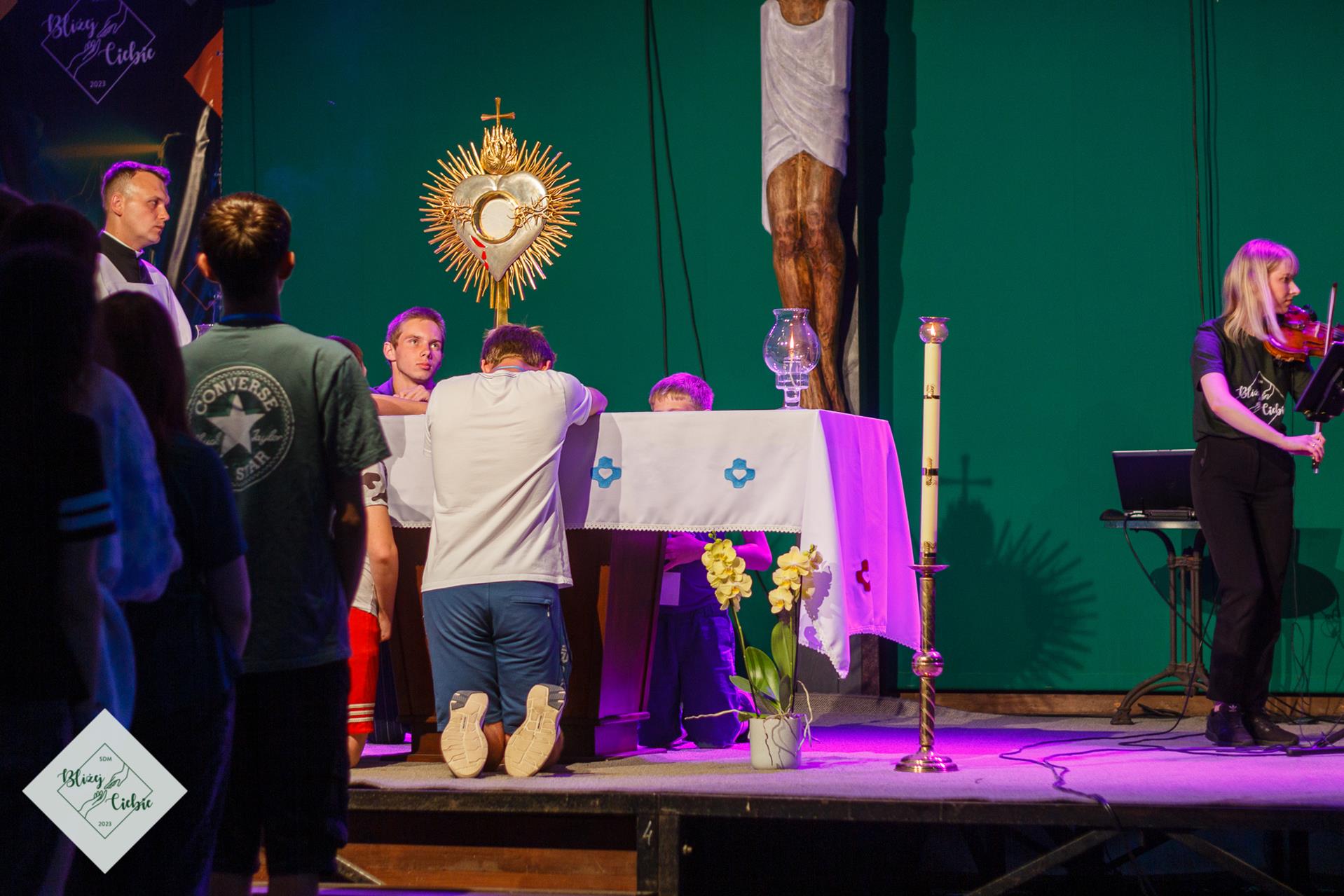 Wieczór uwielbieniowy, poprowadził dla nas zespół muzyczny Sezon na Czereśnie i ks. Jakub Kopystyński SCJ. Śpiewem podziękowaliśmy Panu Bogu za czas tegorocznych Sercańskich Dni Młodych. Jak wspomina Zuza z Ostrowca: Najfajniejsze było to jak dosłownie cały SDM podszedł pod ołtarz, aby skorzystać z możliwości dotknięcia Pana Jezusa w monstrancji. Naprawdę świetne uczucie, fizyczny kontakt z samym Bogiem. W chwili skupienia, dotykając wystawionego Najświętszego Sakramentu oddaliśmy Panu Jezusowi swoją przyszłość.