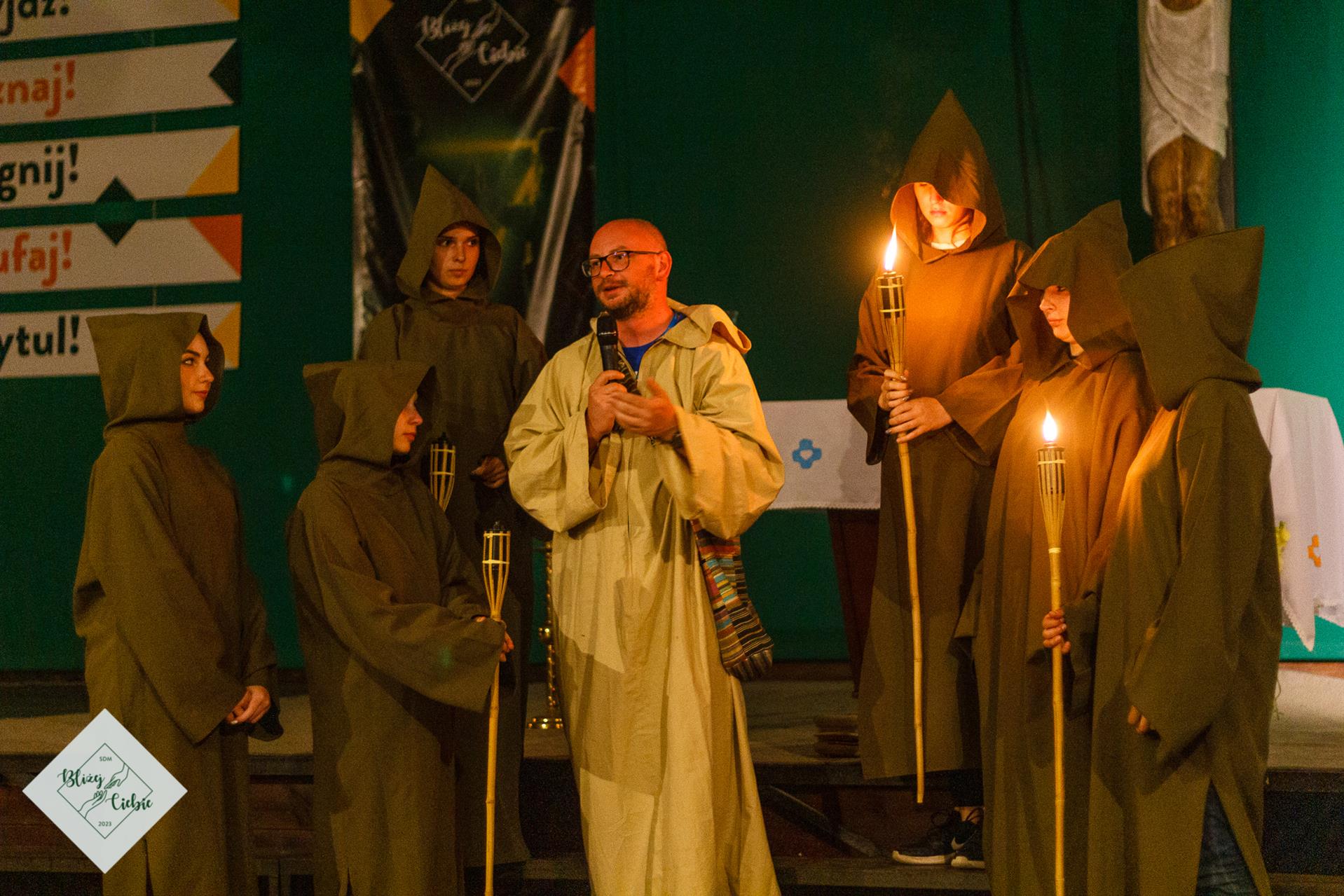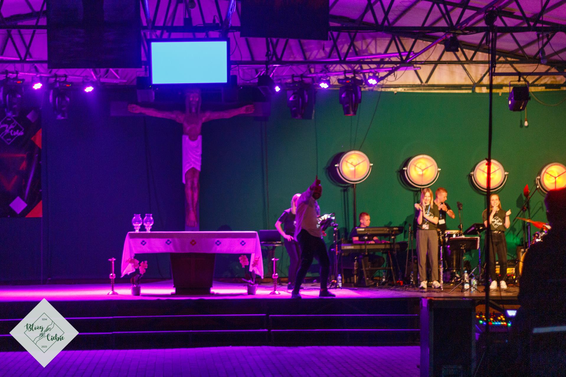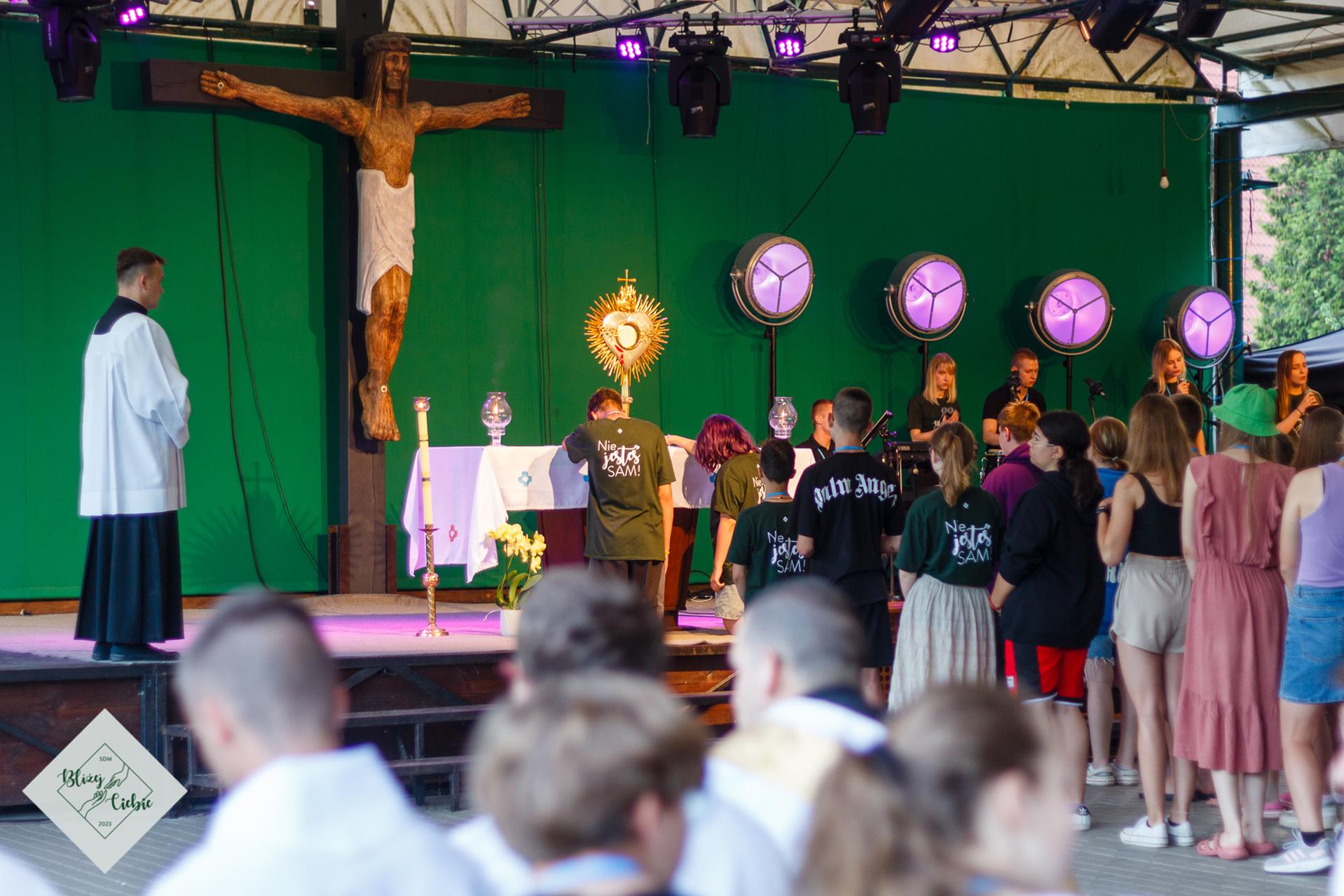 Mszy Świętej przewodniczył ks. Łukasz Grzejda SCJ, a homilię wygłosił ks. Wojtek Olszewski SCJ. Była nietypowa, ponieważ komentarz do Słowa Bożego został ubogacony wypowiedziami i świadectwem młodzieży z krakowskiej parafii Matki Bożej Fatimskiej. Ksiądz odwołał się do filmu Shrek w homilii – szok! W dodatku pasowało to do dzisiejszej Ewangelii. Później młodzież, która powiedziała o tym, czego realnie doświadczamy. Wszystko fajnie zrobione. Tak homilię podsumowała grupa uczestników z parafii NSPJ w Krakowie.