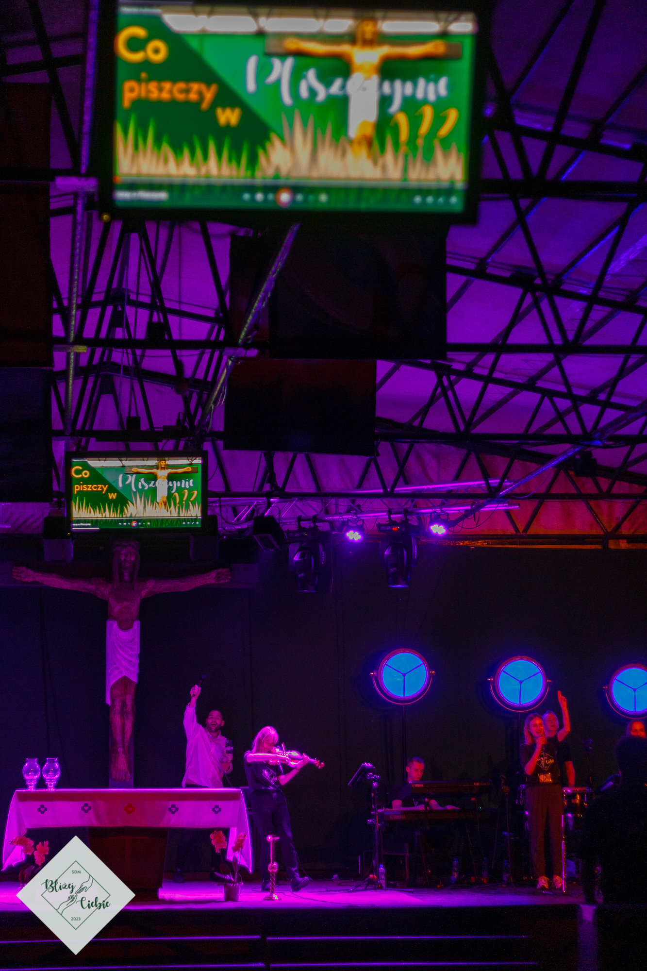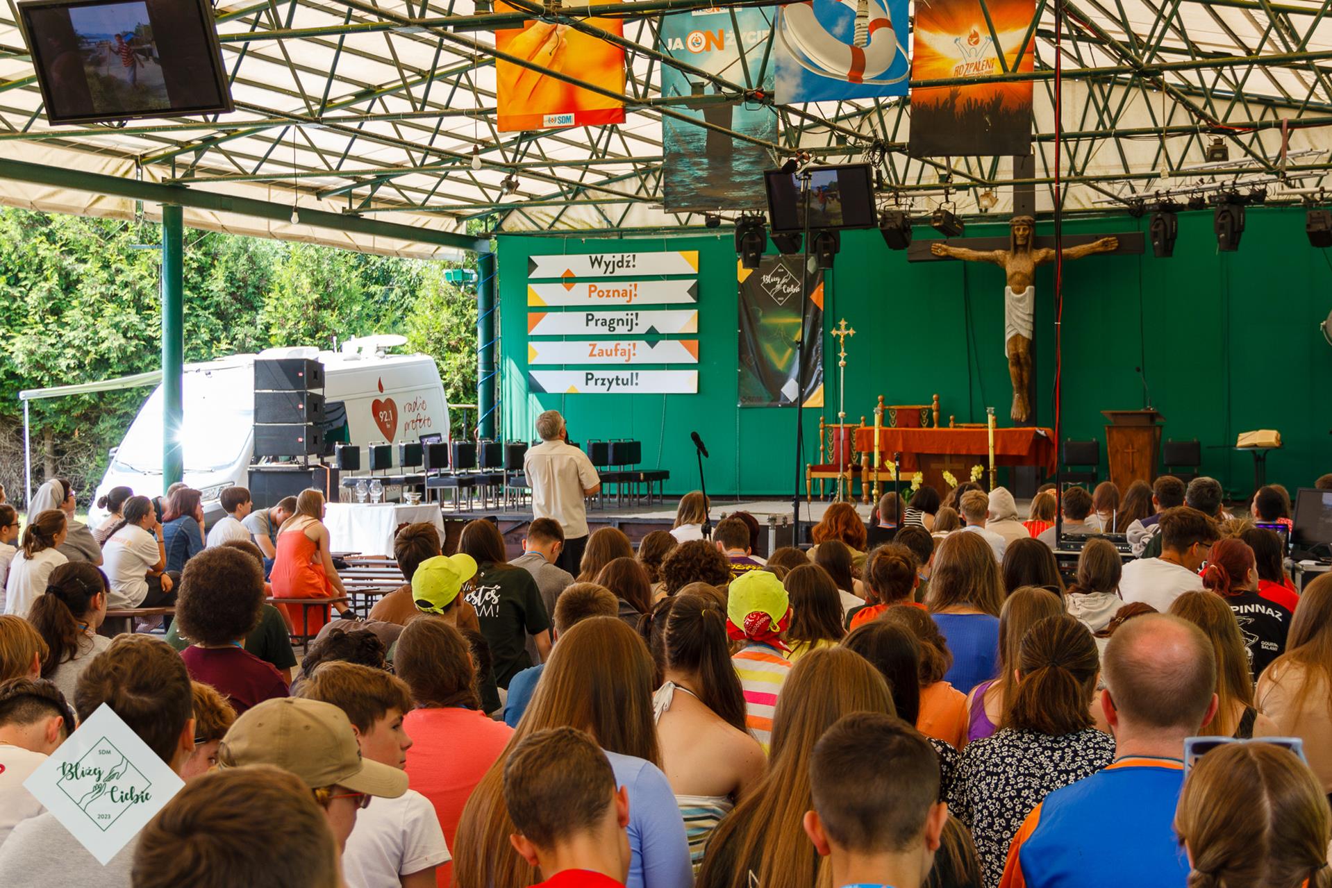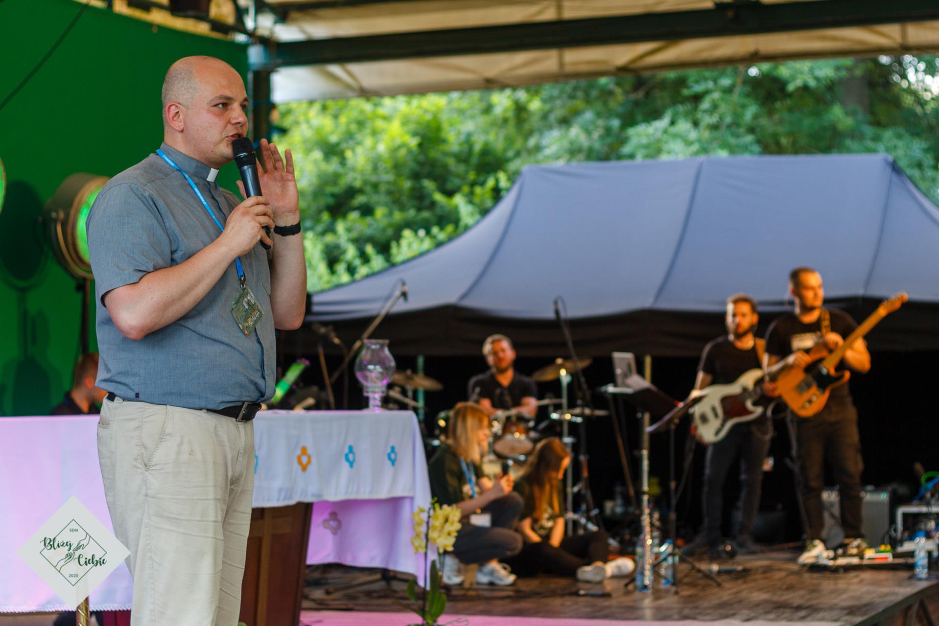 Mszy Świętej przewodniczył ks. Łukasz Grzejda SCJ, a homilię wygłosił ks. Wojtek Olszewski SCJ. Była nietypowa, ponieważ komentarz do Słowa Bożego został ubogacony wypowiedziami i świadectwem młodzieży z krakowskiej parafii Matki Bożej Fatimskiej. Ksiądz odwołał się do filmu Shrek w homilii – szok! W dodatku pasowało to do dzisiejszej Ewangelii. Później młodzież, która powiedziała o tym, czego realnie doświadczamy. Wszystko fajnie zrobione. Tak homilię podsumowała grupa uczestników z parafii NSPJ w Krakowie.